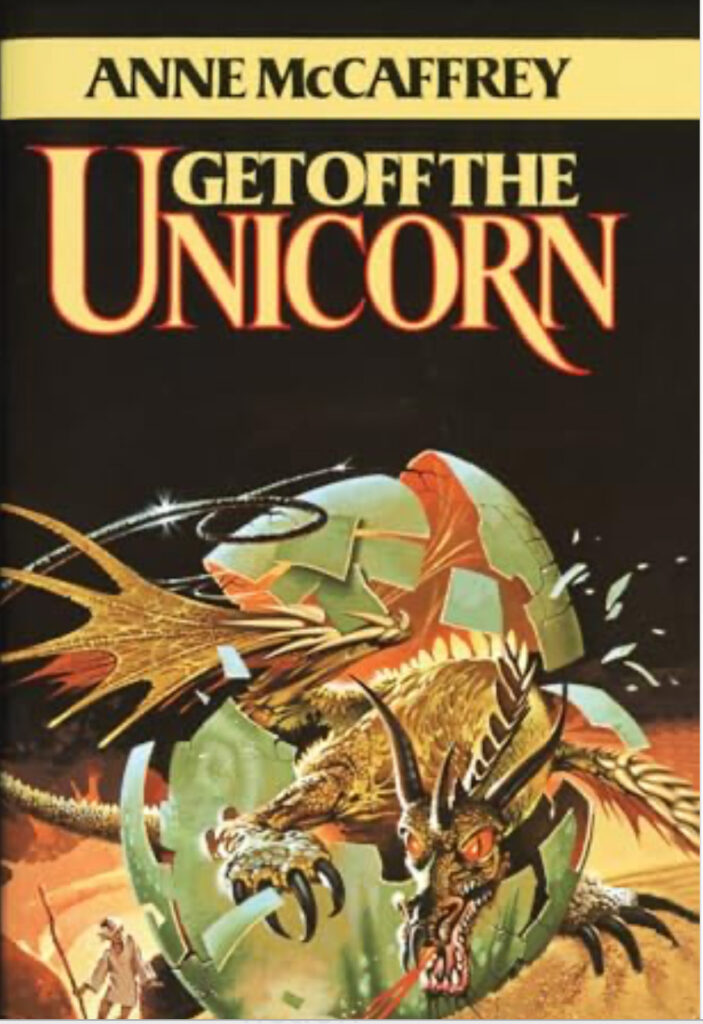 But I gave all those books away a long time ago, mostly because they don’t always hold up well, and I want to hold on to the memories of what they meant to me as a young girl/woman, more than I want to reread them. I was surprised then when I found this book, Get Off the Unicorn, hiding in my pocket book shelves, and I decided to reread it.